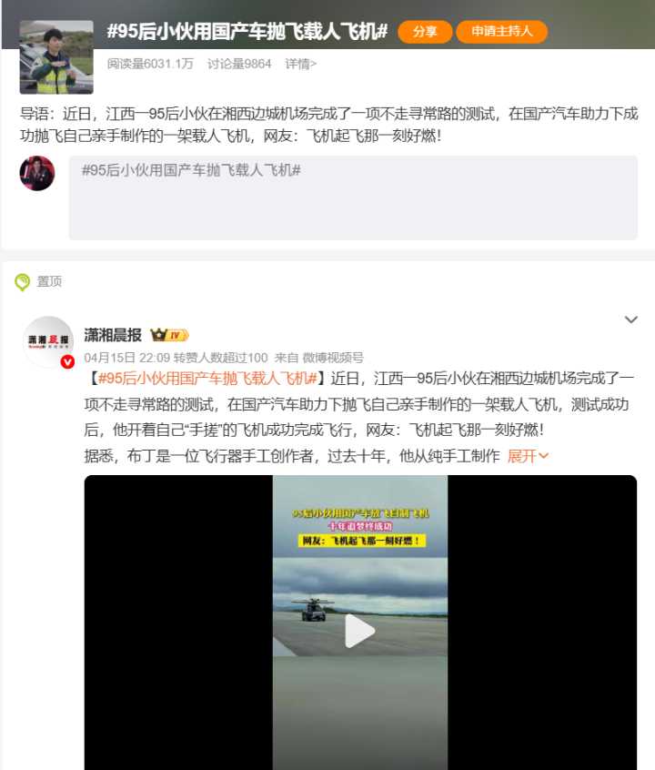 那位95后小伙,没有航空科班背景,硬是靠着图纸、零件和无数次失败,从零造出了一架载人飞机。这种“把梦想干出来”的执着,让无数人为之动容。